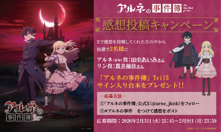 TVアニメ「アルネの事件簿」のTeil5放送を記念して、感想投稿キャンペーンを実施いたします!