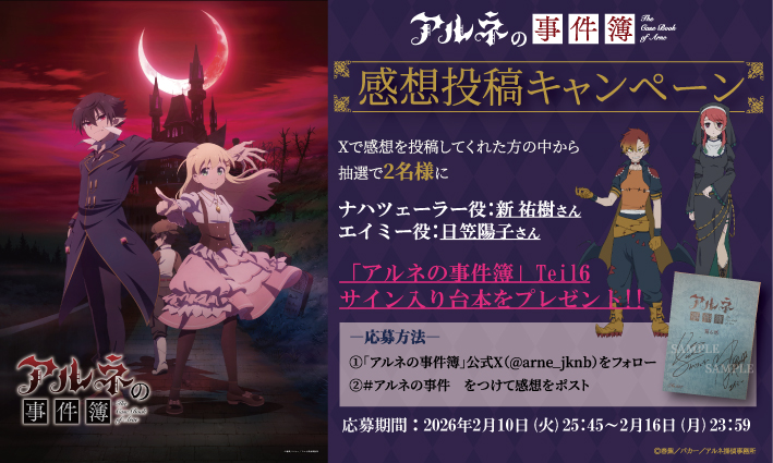 TVアニメ「アルネの事件簿」のTeil6放送を記念して、感想投稿キャンペーンを実施いたします!